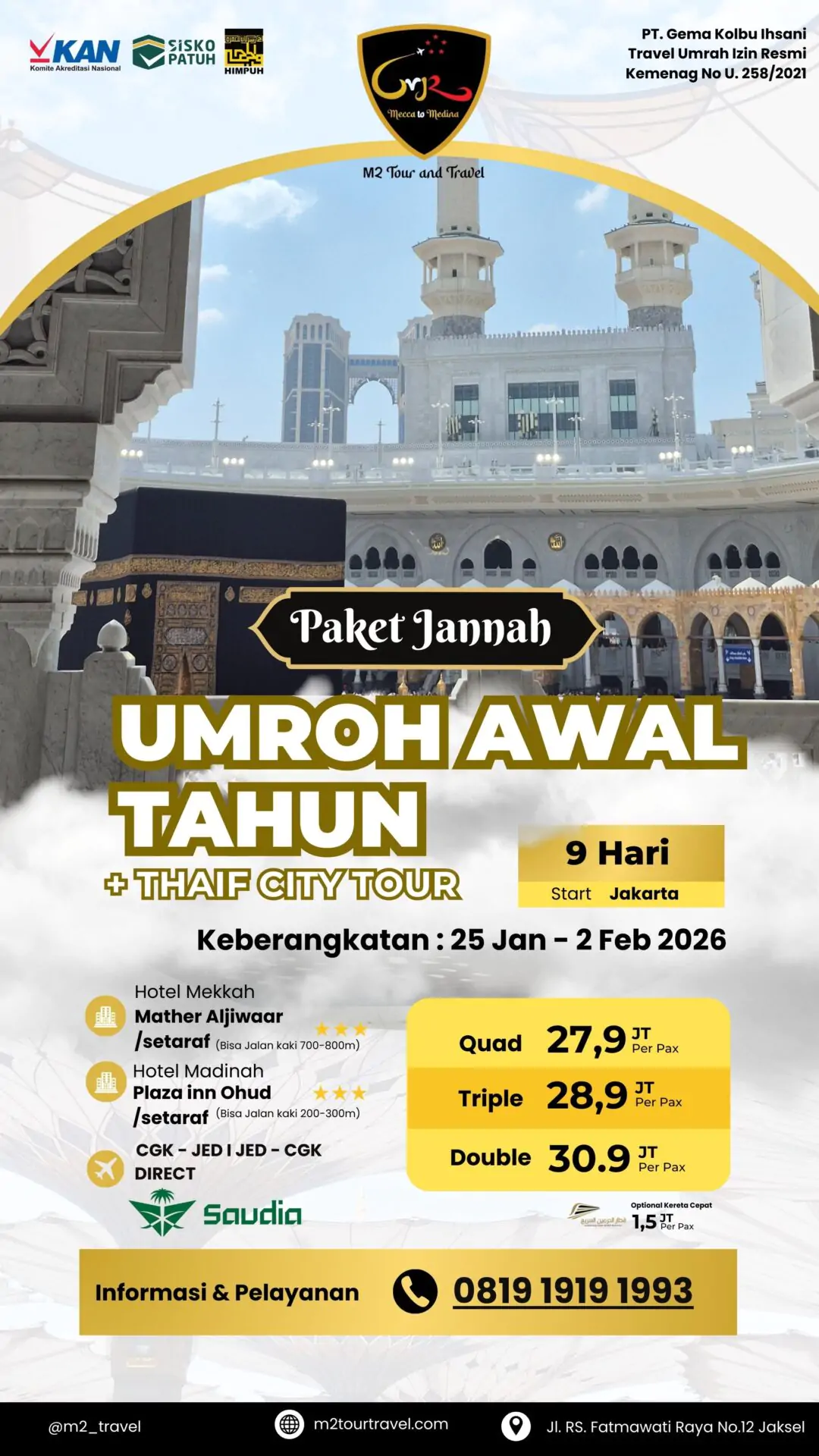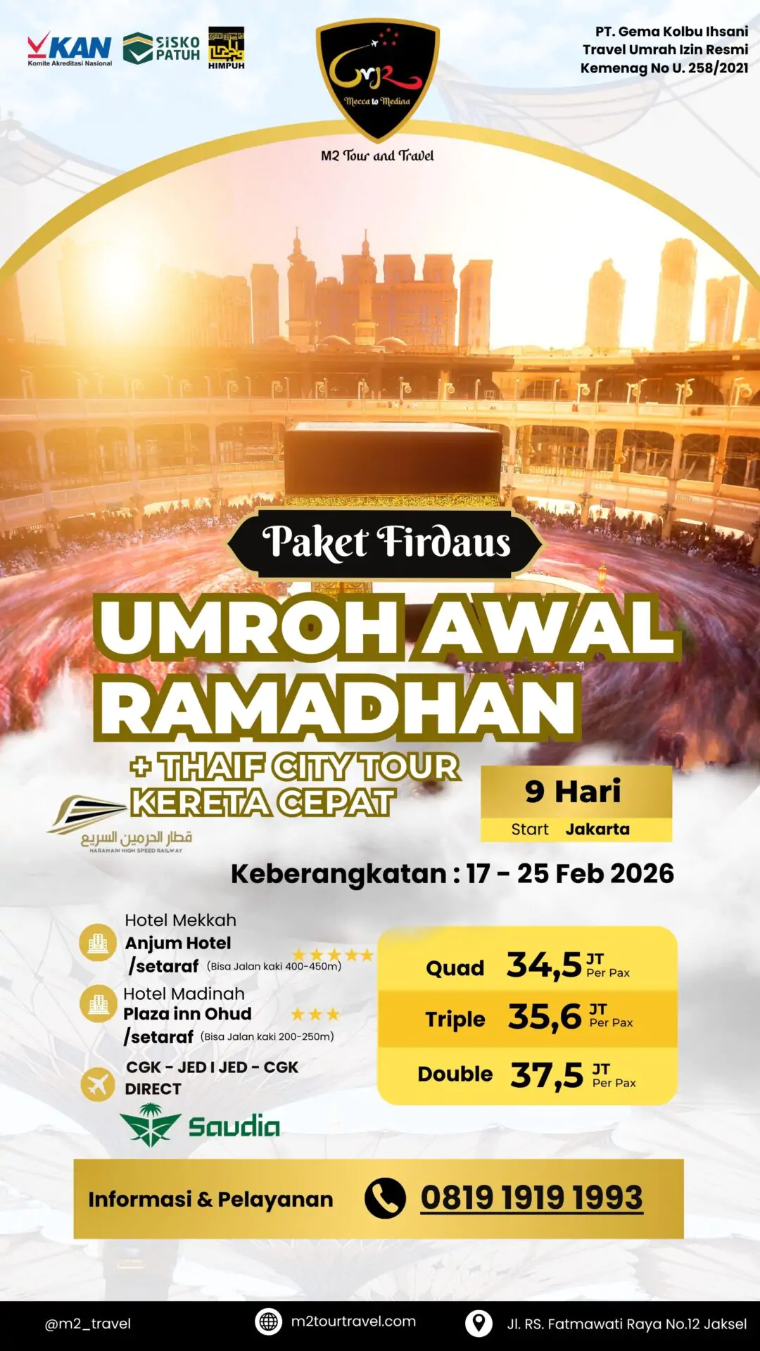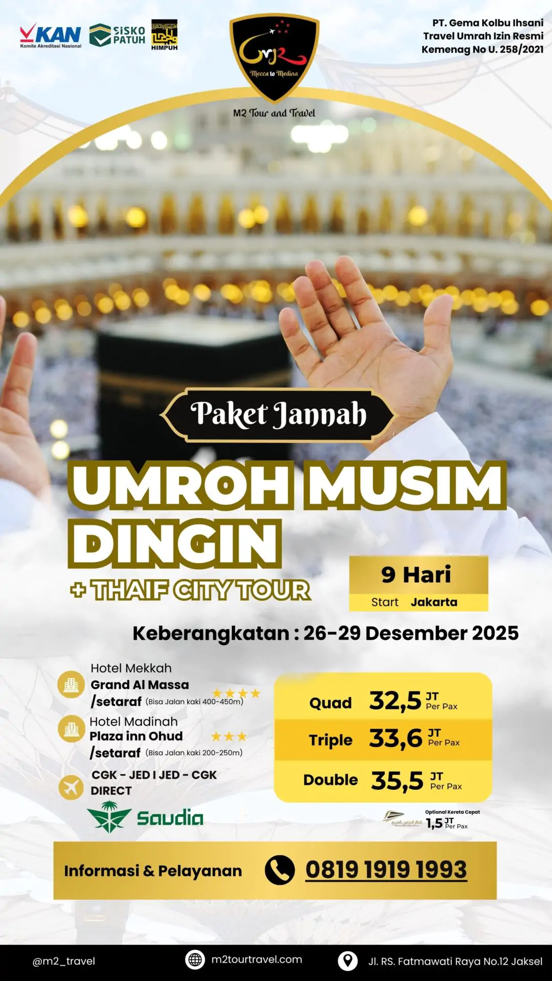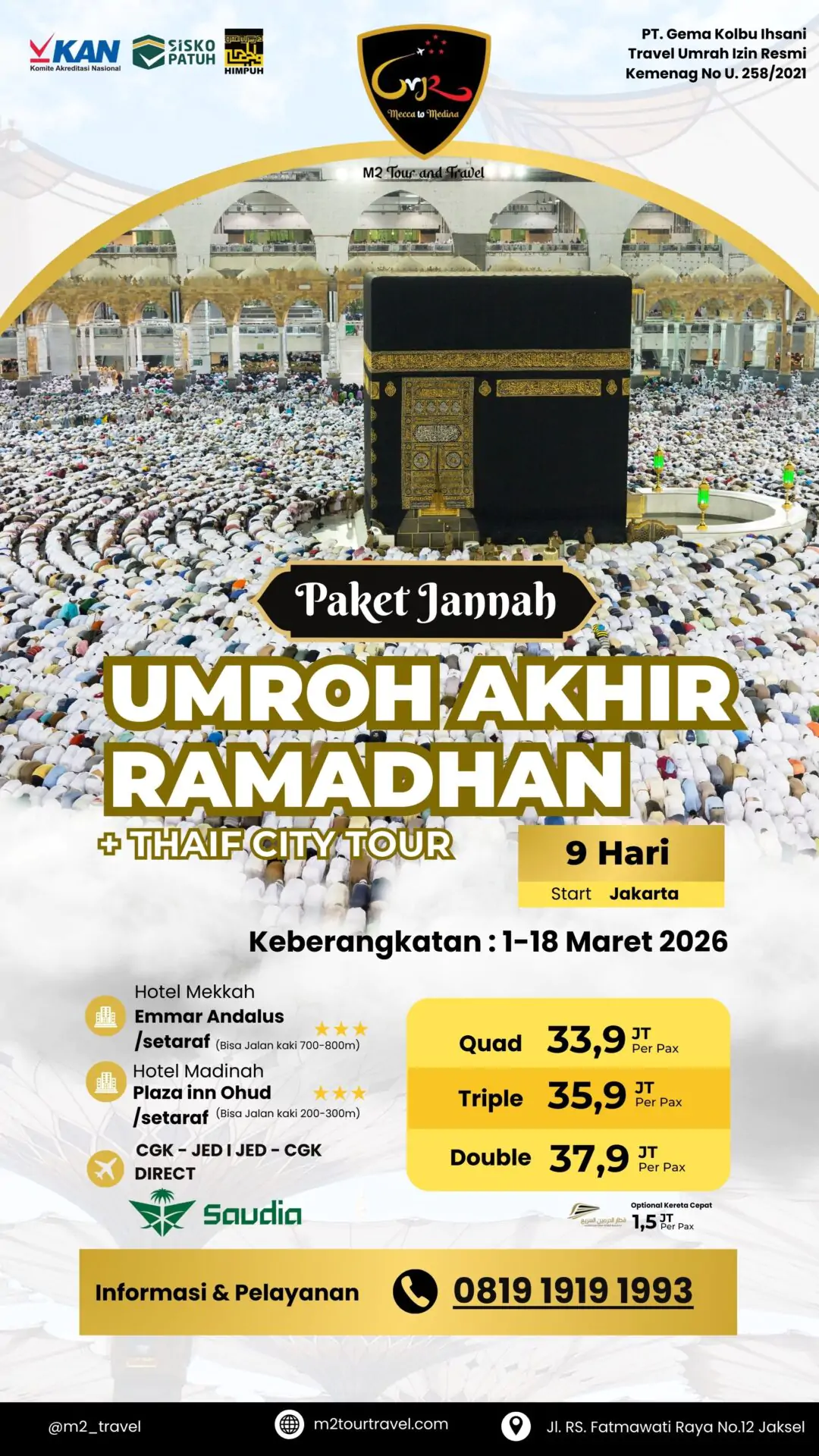 M2 Tour and Travel memberikan harga dan penawaran terbaik bagi para calon Jamaah