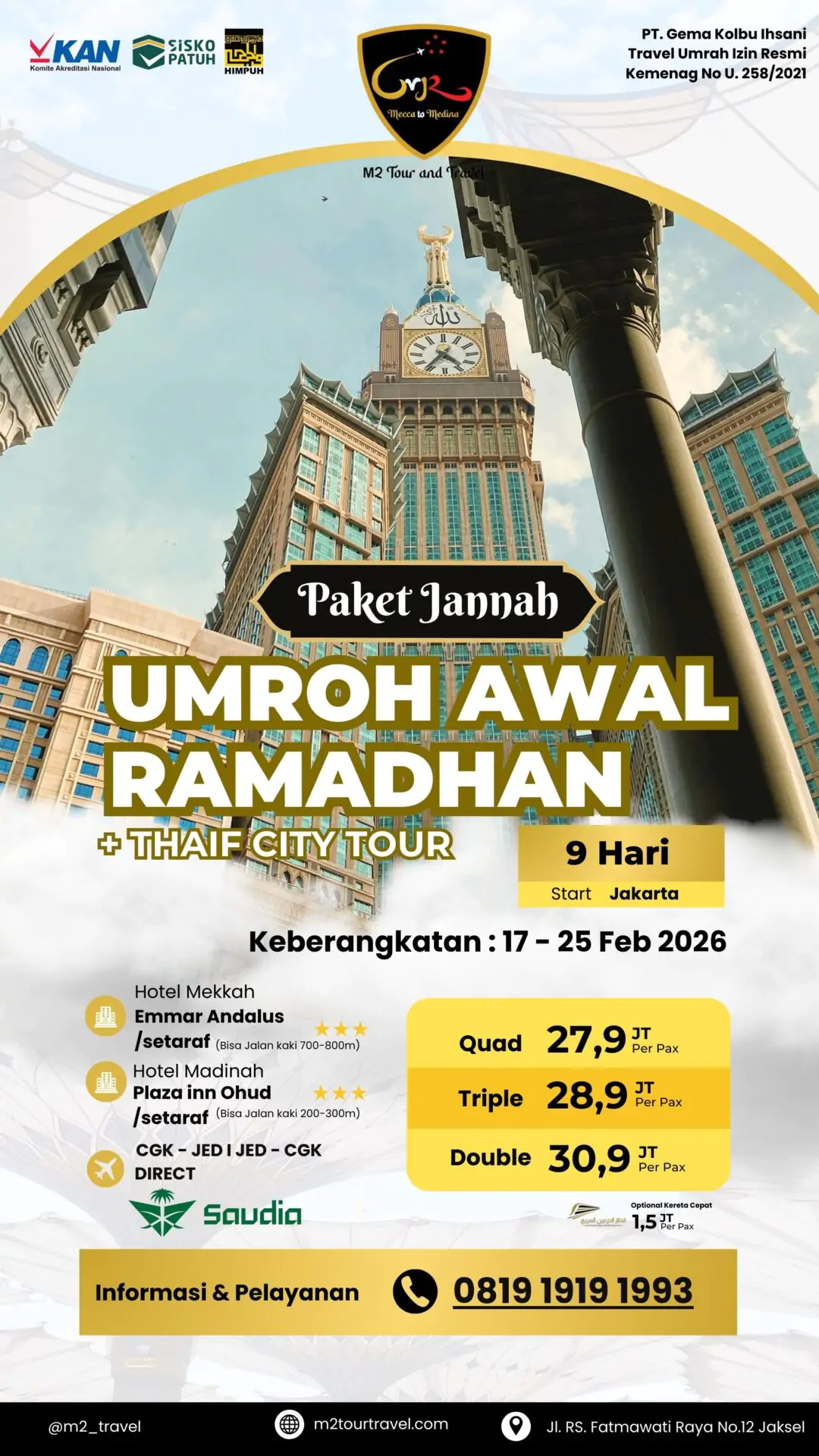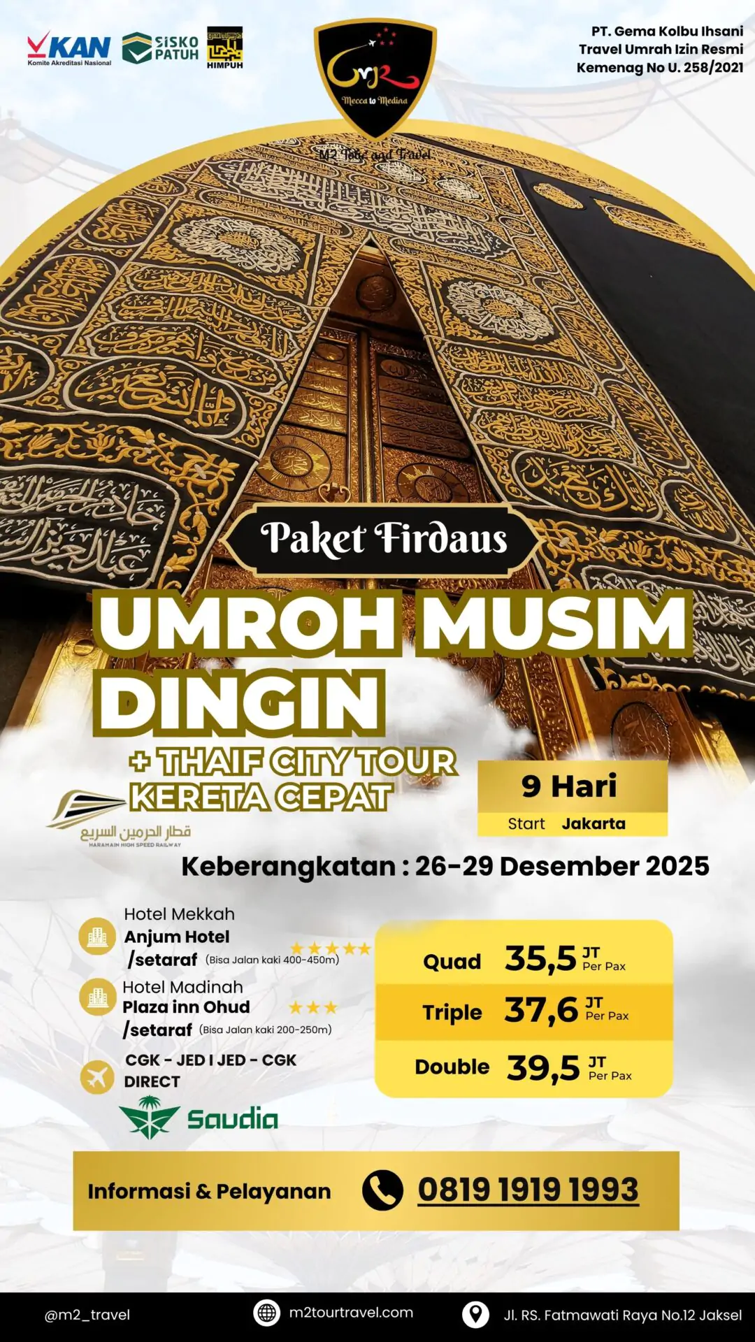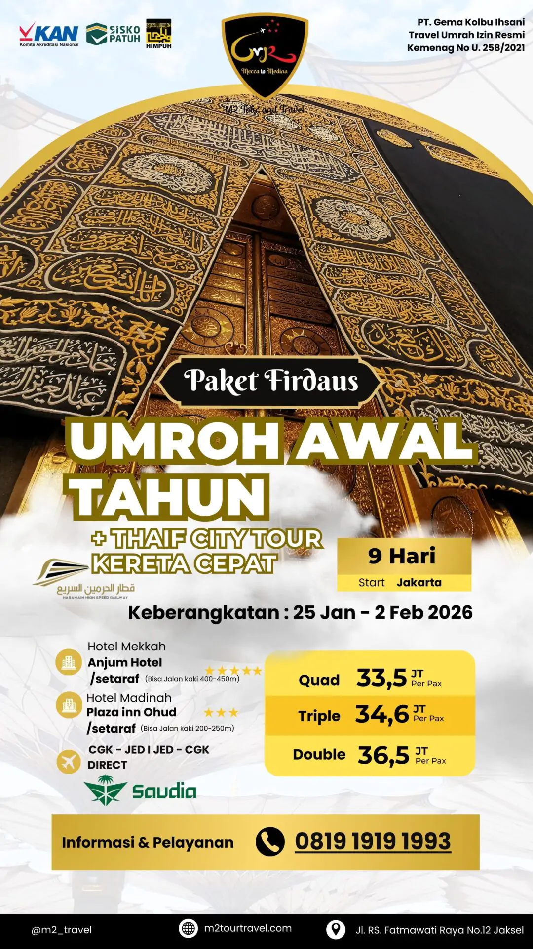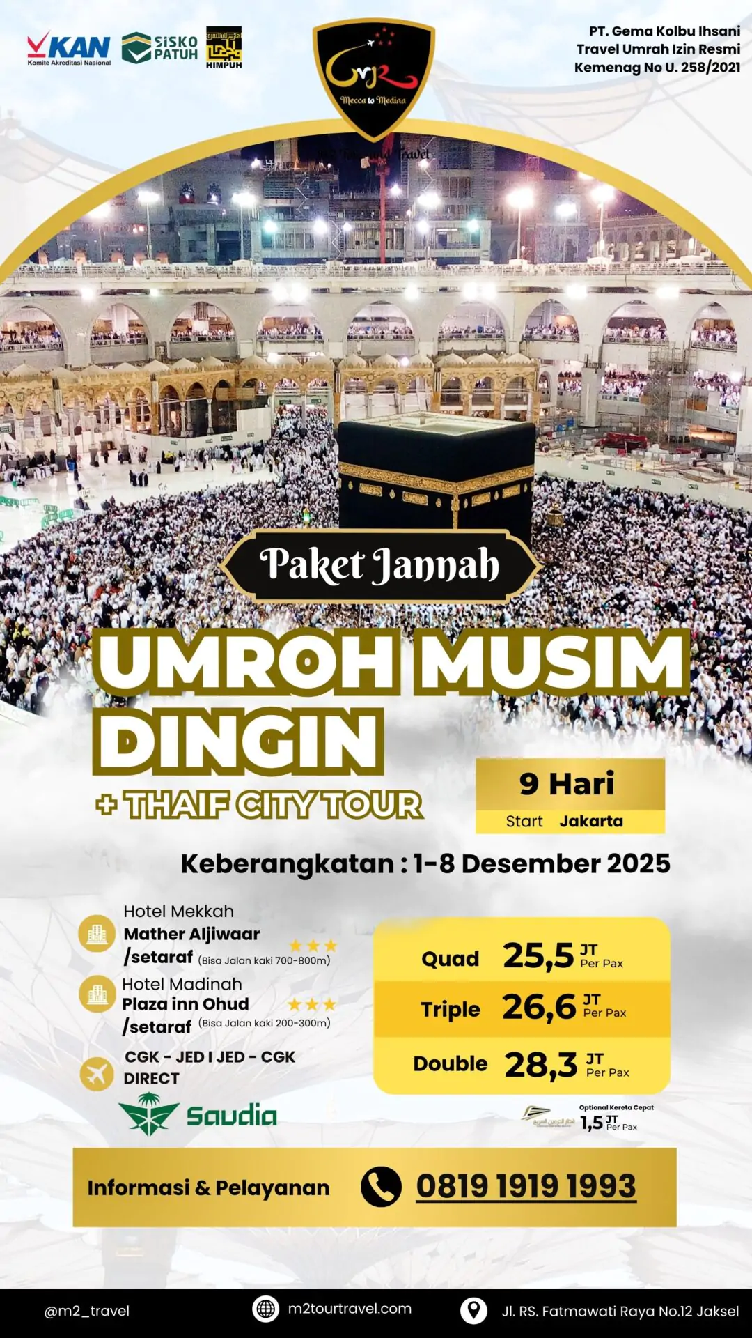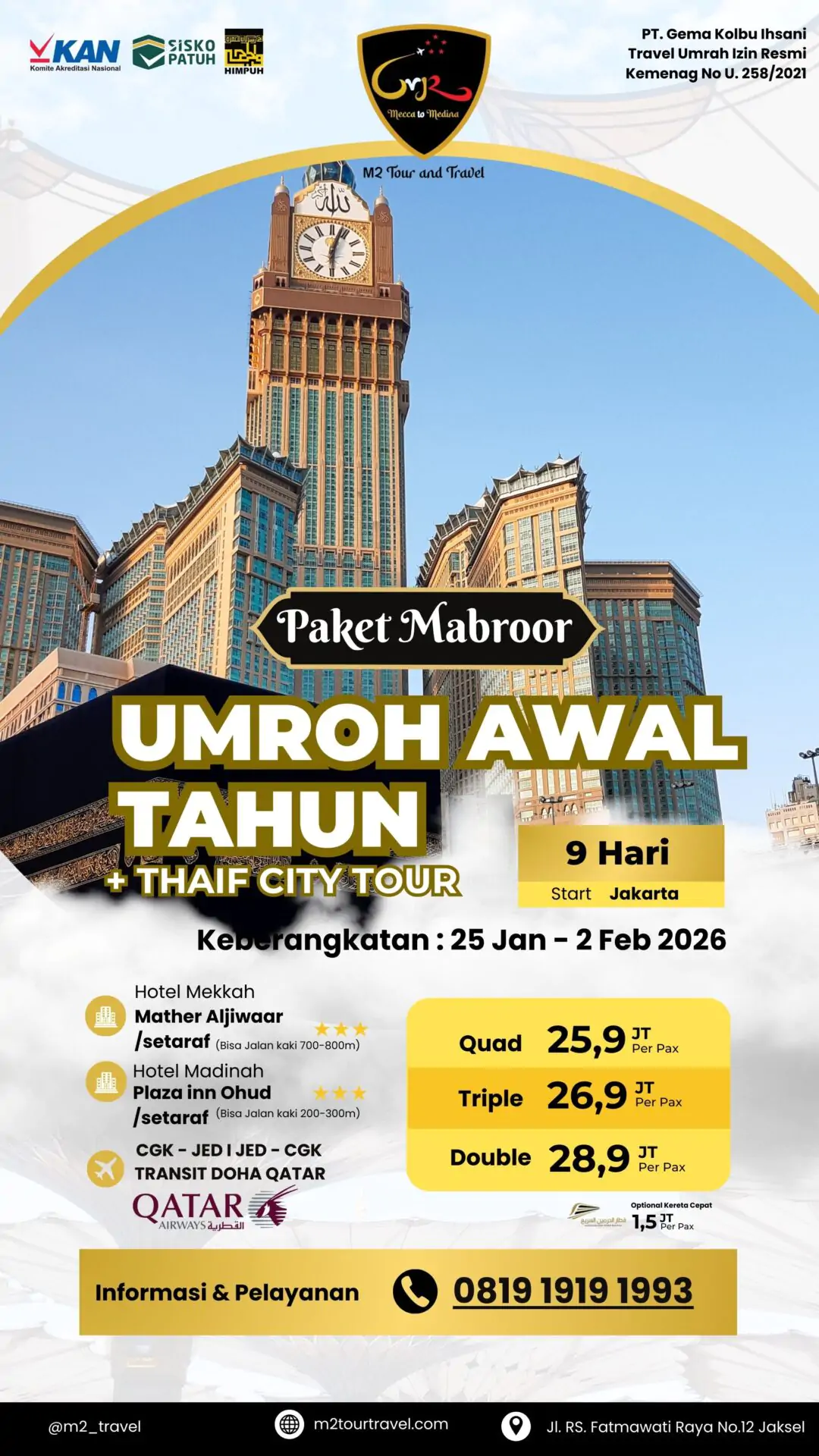 M2 Tour and Travel memberikan harga dan penawaran terbaik bagi para calon Jamaah